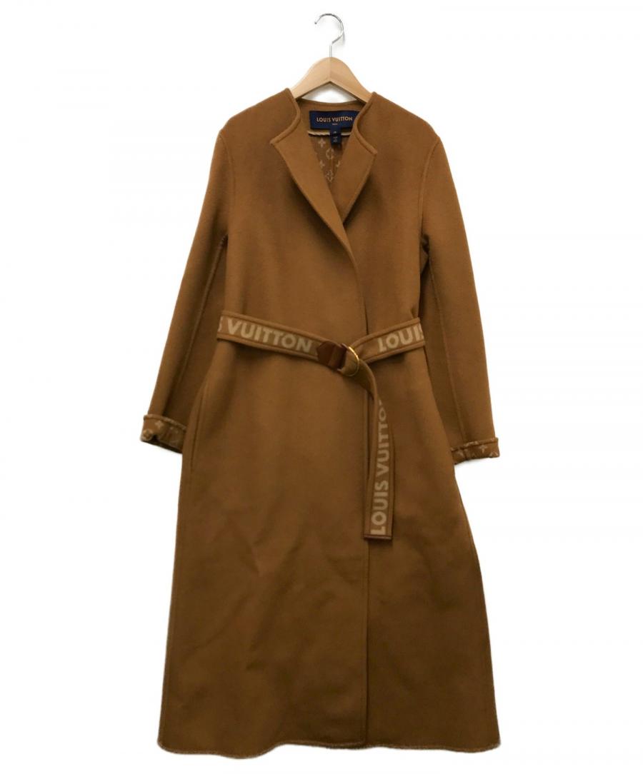 ベルテッドロングノーカラーコート