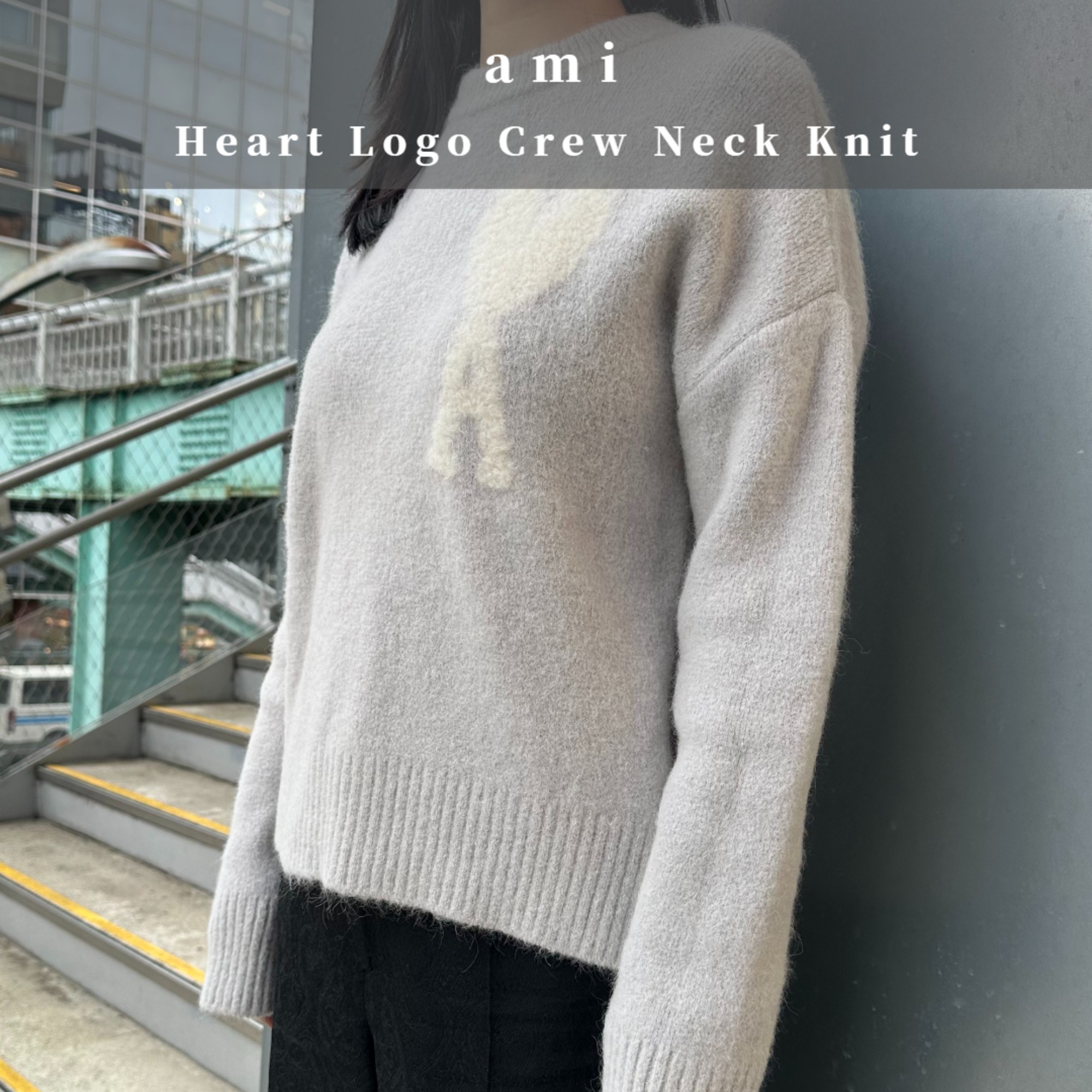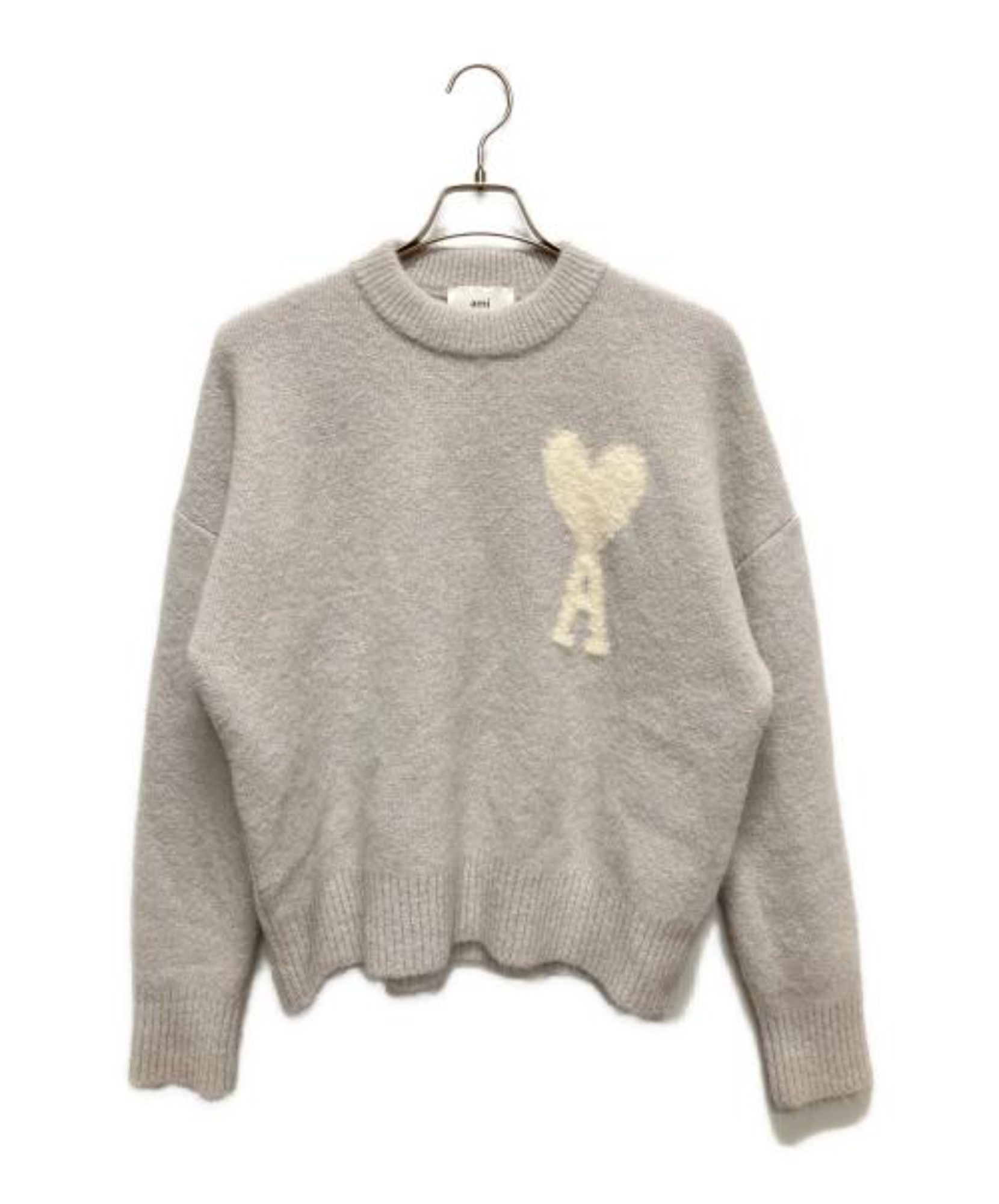 シンプルながら遊び心のあるデザインが魅力のAMIのハートロゴクルーネックニットでございます。