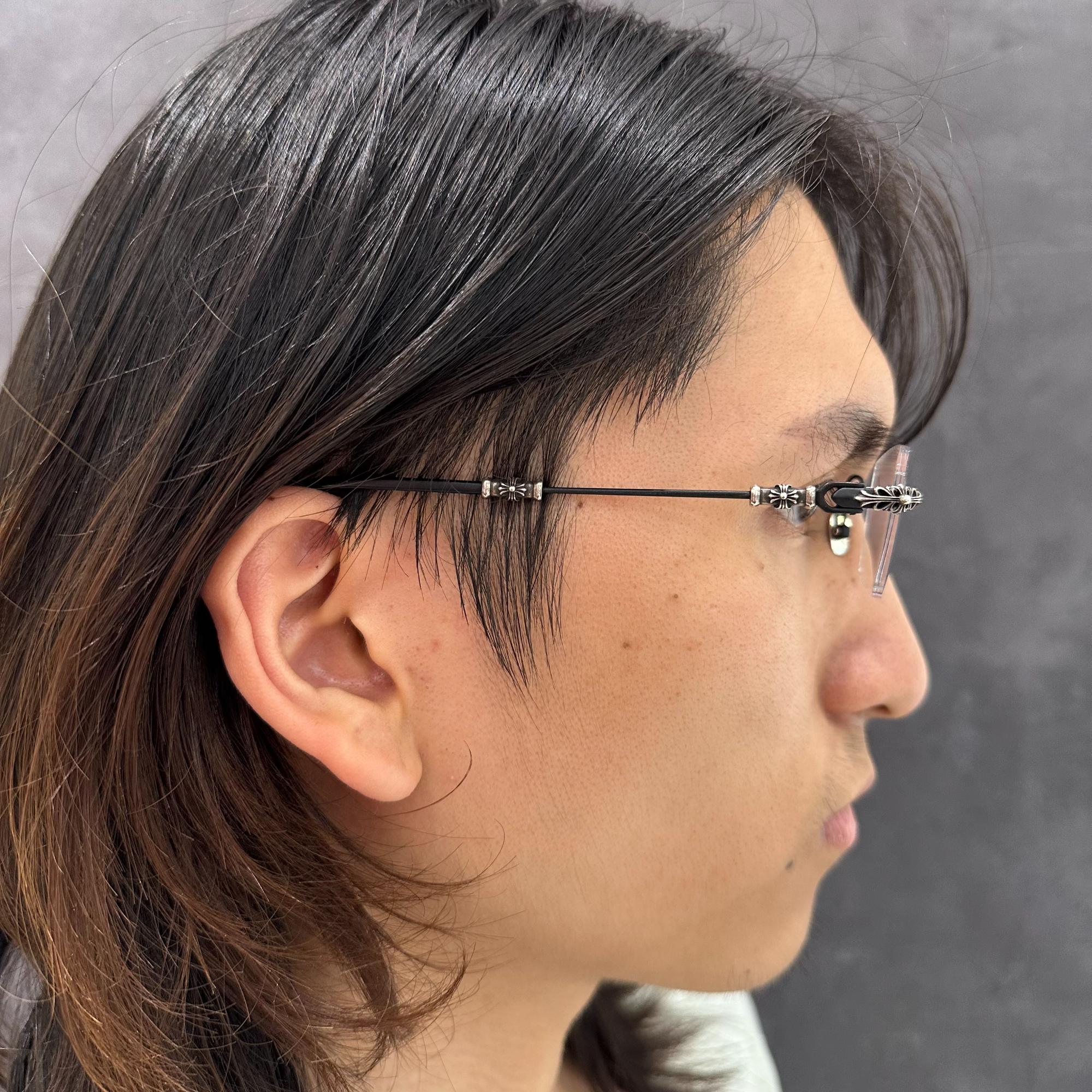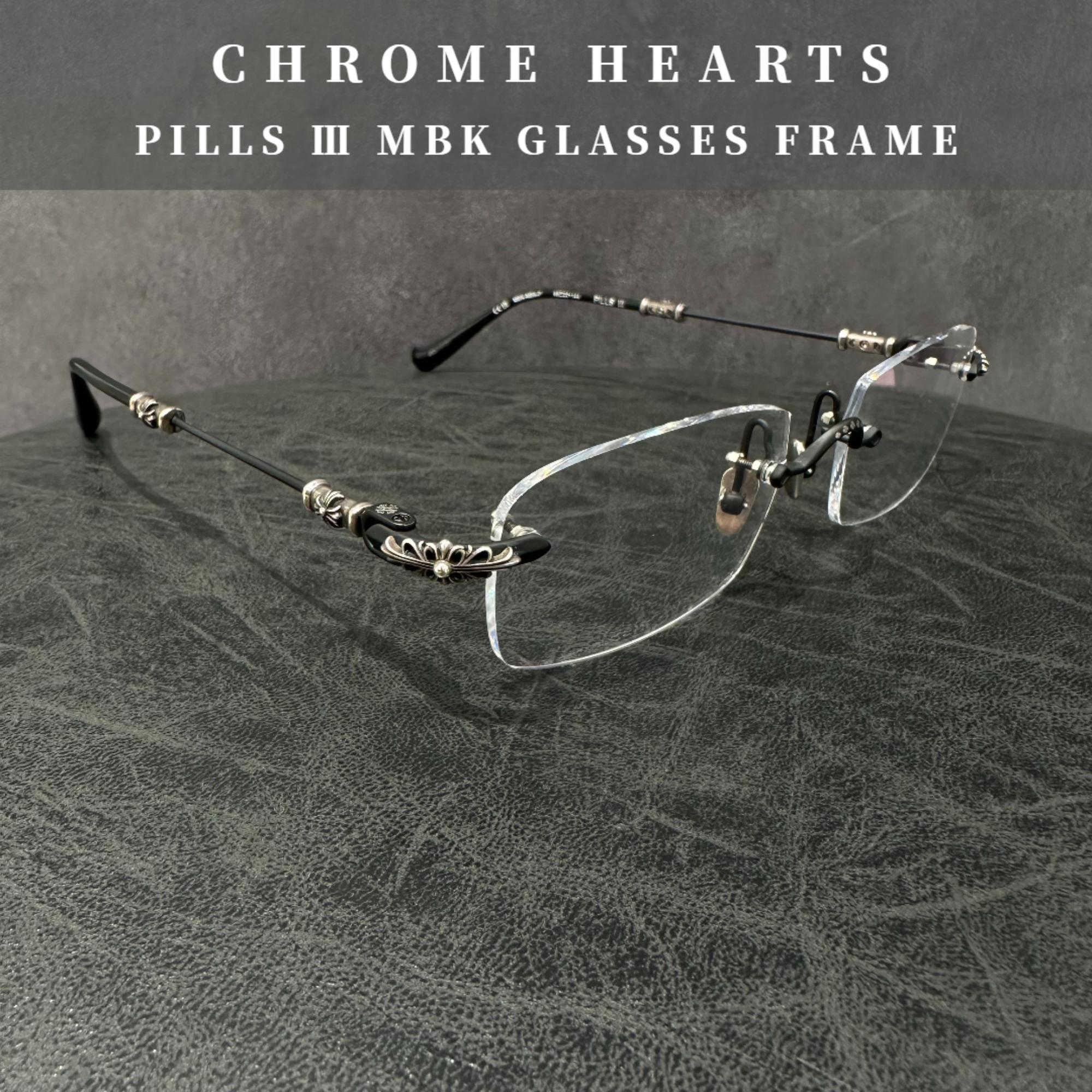 ① 人気のアイウェアモデル 「PILLS Ⅲ」はクロムハーツのアイウェアの中でも知名度の高いモデルで、MBK(マットブラック)カラーはスタイリングに取り入れやすく人気があります。