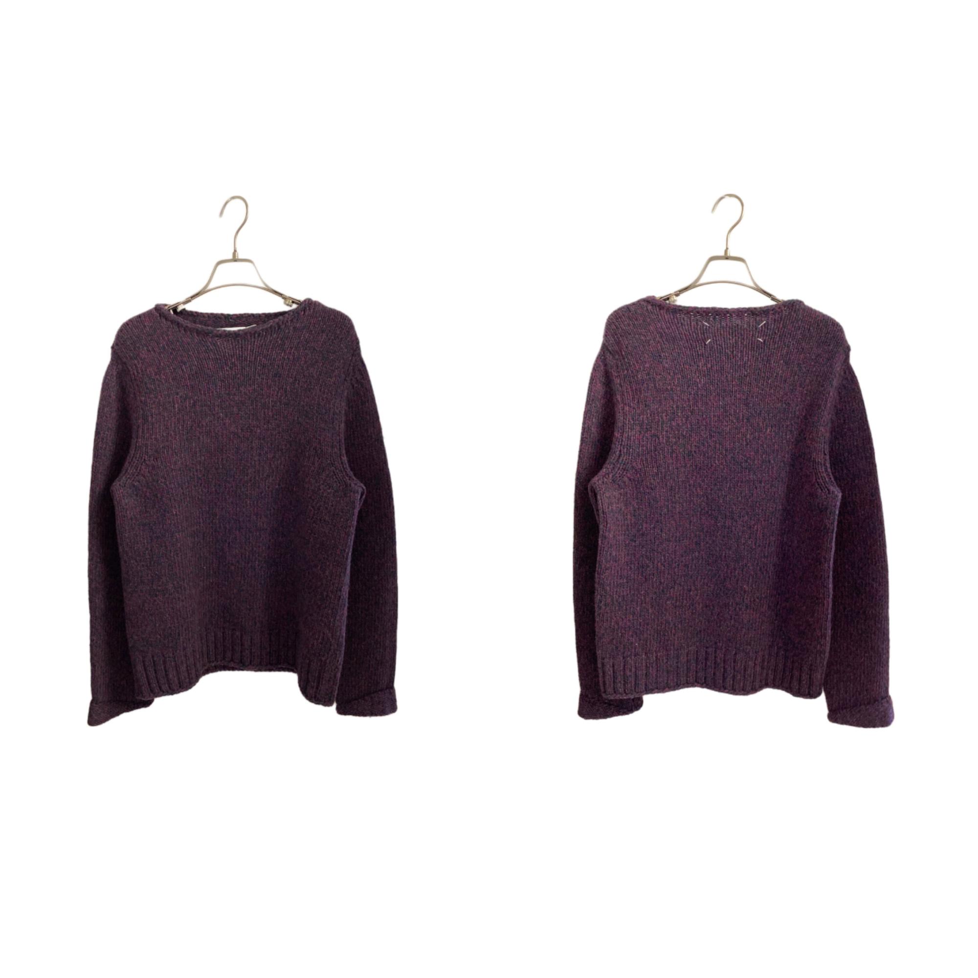 Maison Margielaらしいクラフト感が際立つ、ウール素材のハンドニットセーター。手編みならではの温かみと立体的な編み地が特徴で、シンプルながらもしっかりと存在感のある一着です。上質なウールを使用しており、保温性が高く着心地も良好。デニムやスラックスと合わせるだけで、マルジェラらしい抜け感のあるスタイルが完成します。