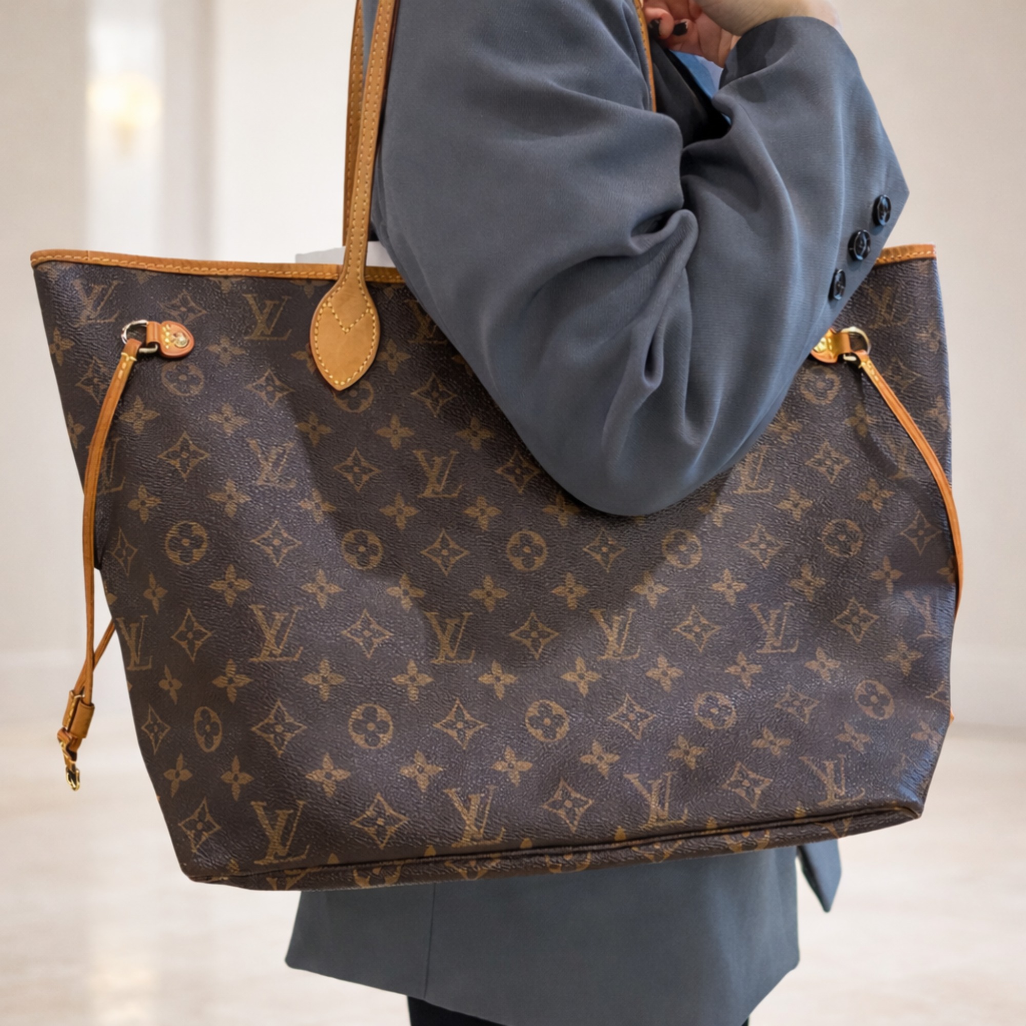 ネヴァーフルは、PM・MM・GMといったサイズ展開があり、中でもMMサイズは収納力と使いやすさのバランスが良く、最も需要の高い定番サイズです。