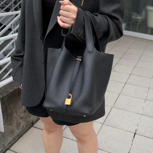 シンプルなバケツ型のトートバッグですが、手に取った瞬間に感じられるレザーの柔ら