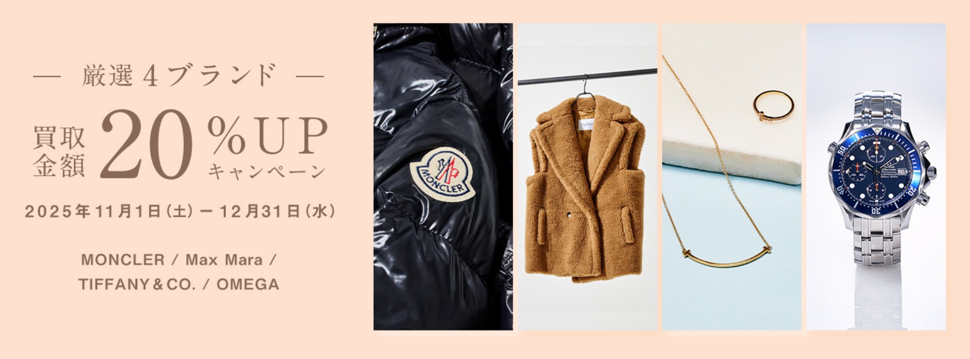 -厳選4ブランド- 買取20%UPキャンペーンのご案内はこちらから