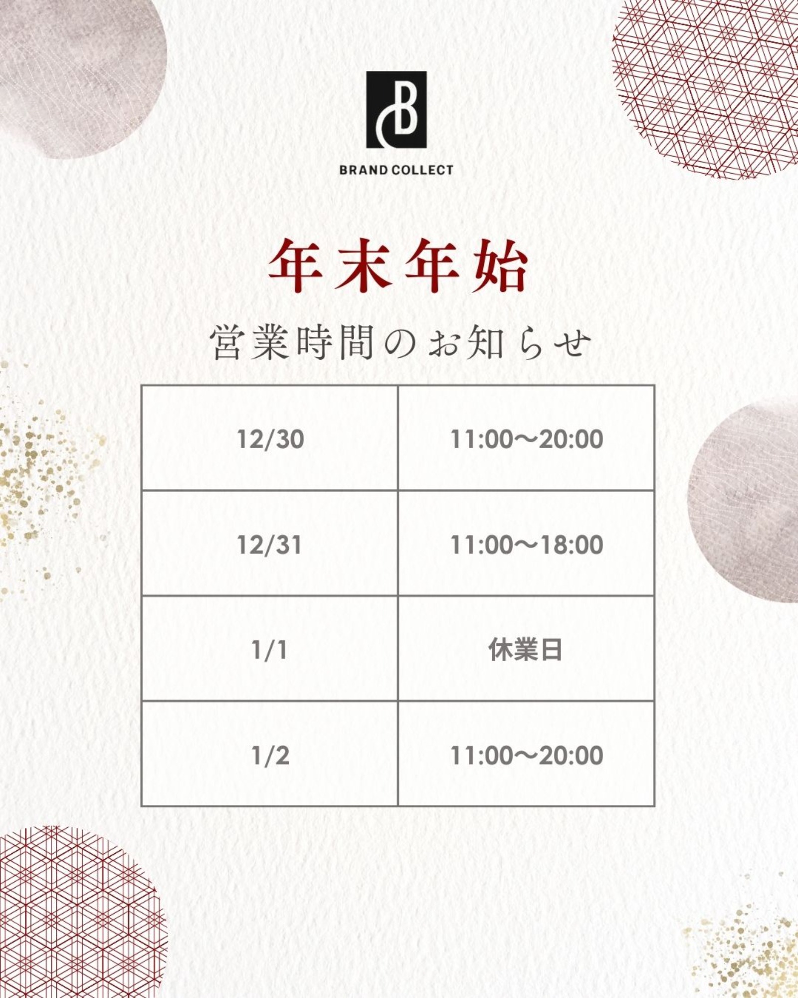本年もブランドコレクト銀座店をご愛顧いただき、誠にありがとうございました。