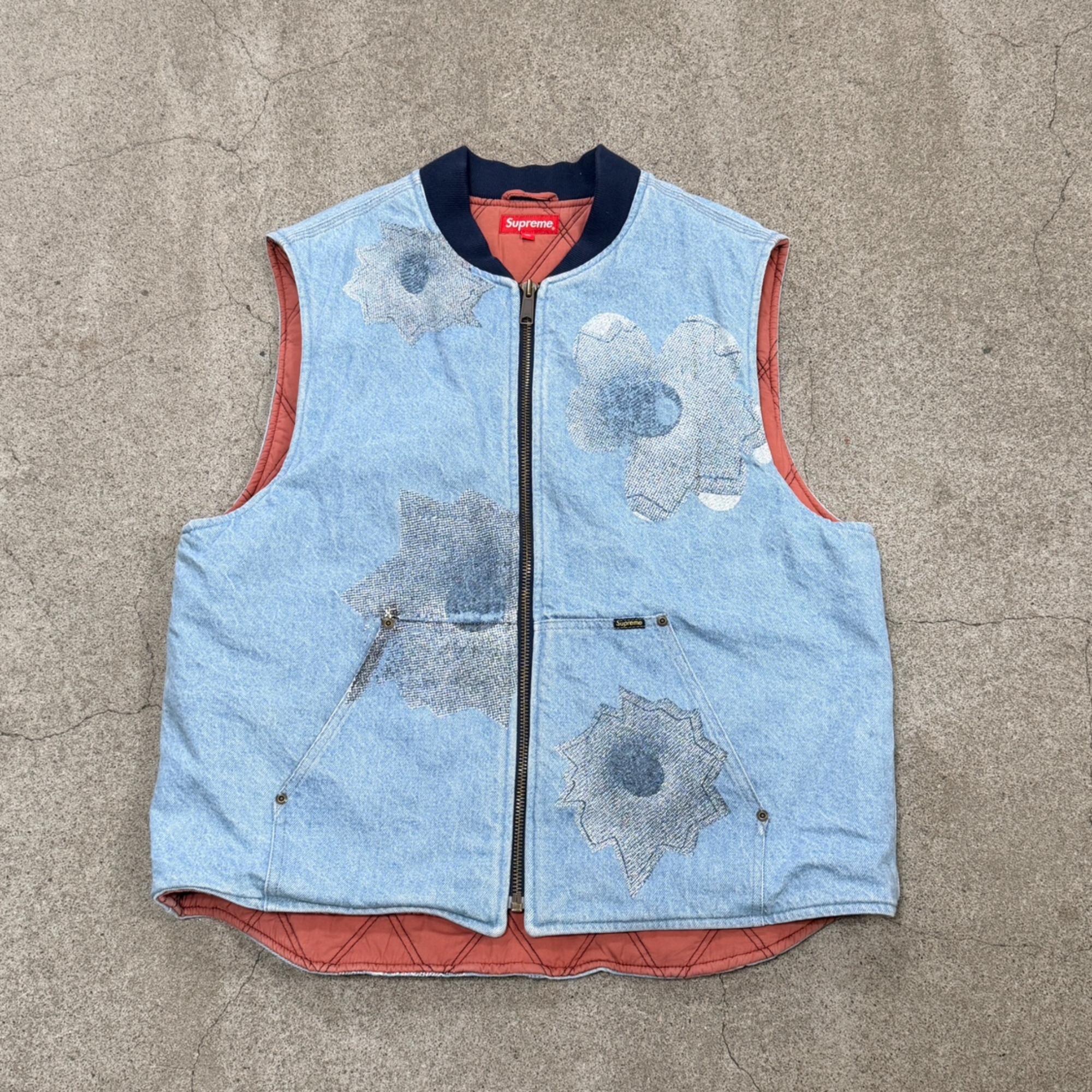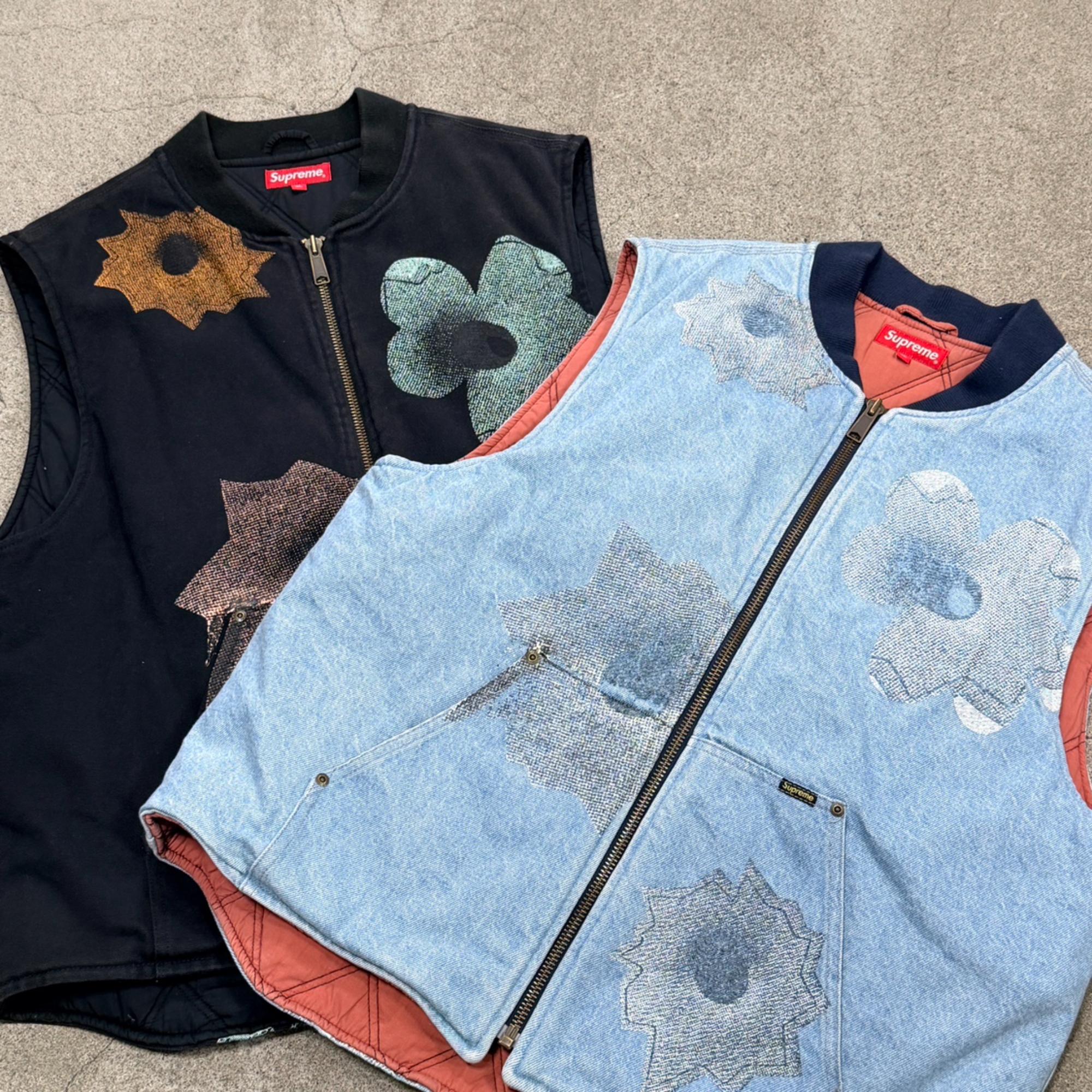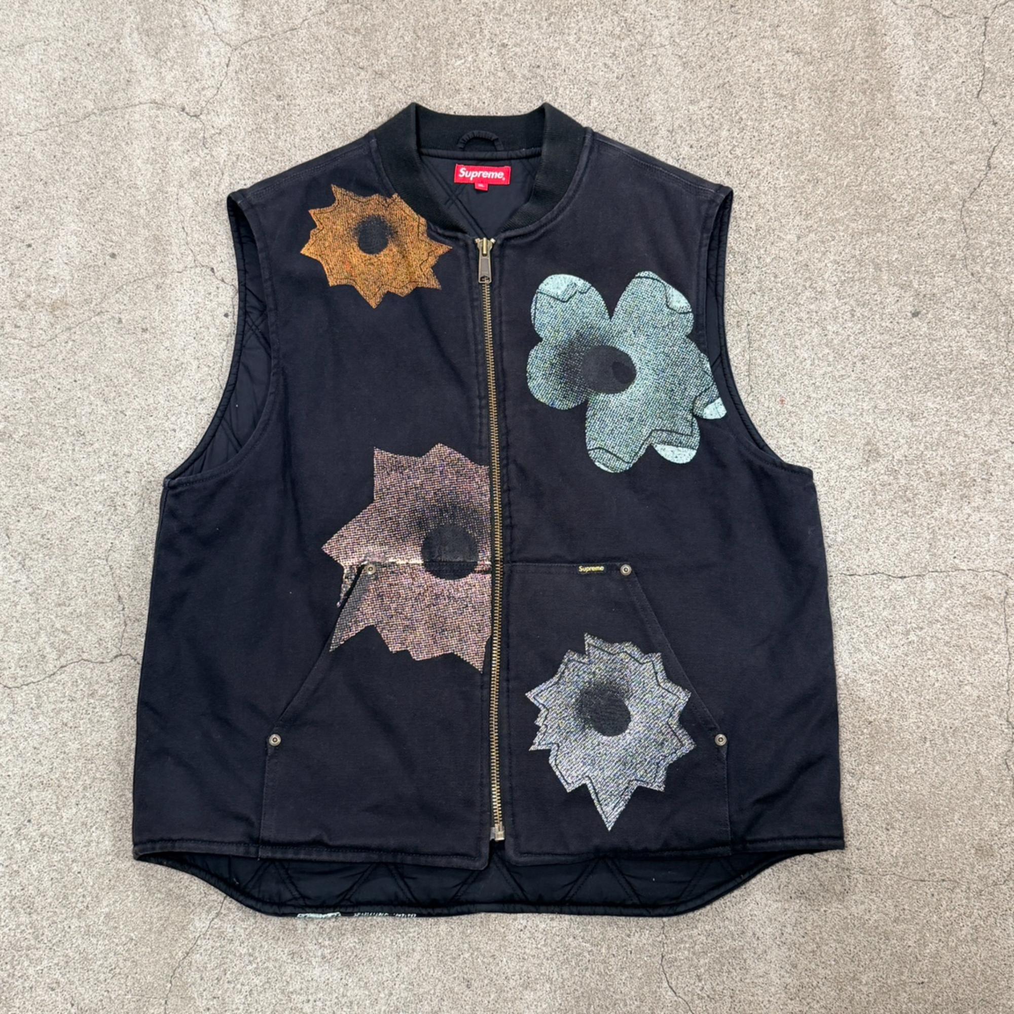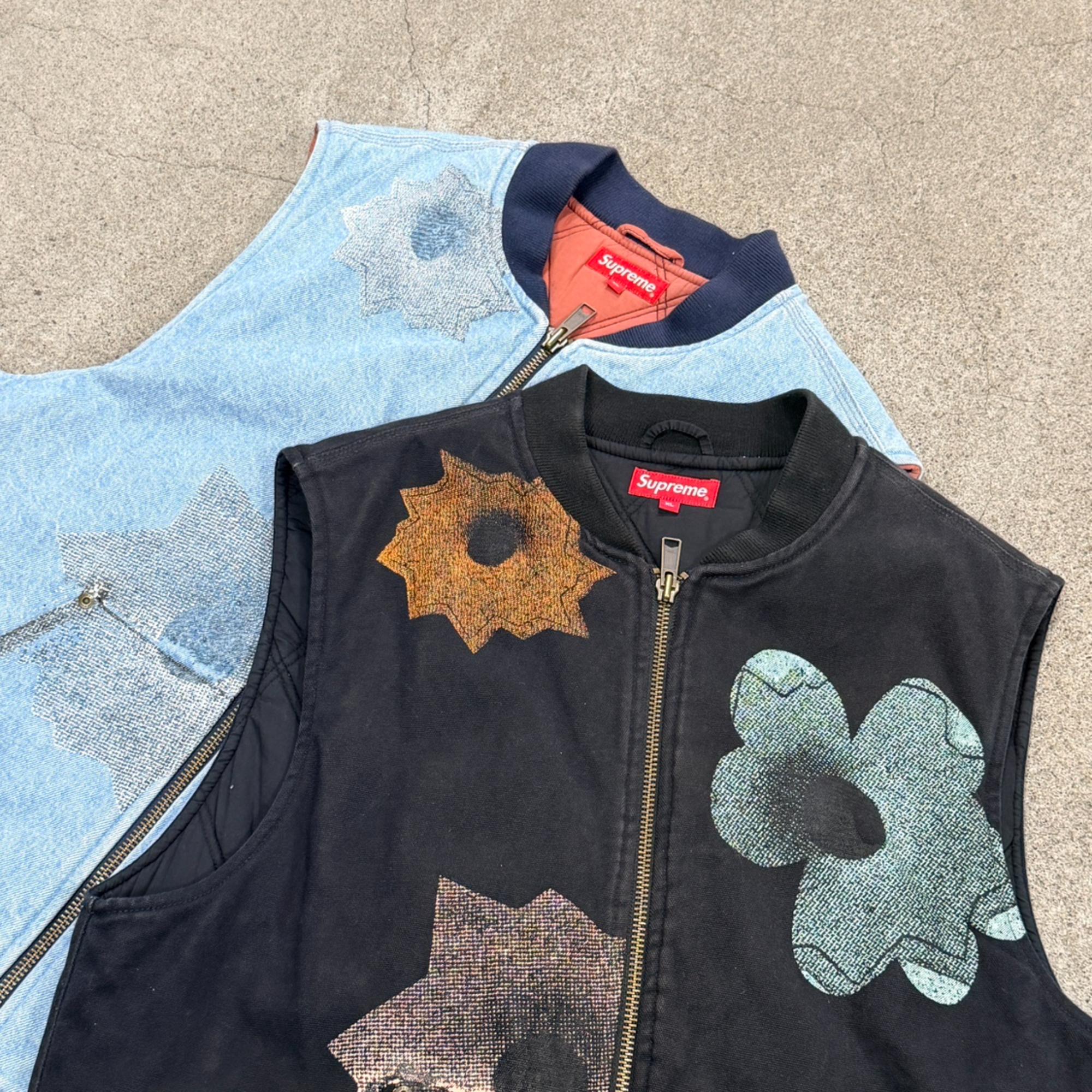 ワークベストをベースにしたデザインで、Supremeらしいストリート感とアート要素が融合しています。