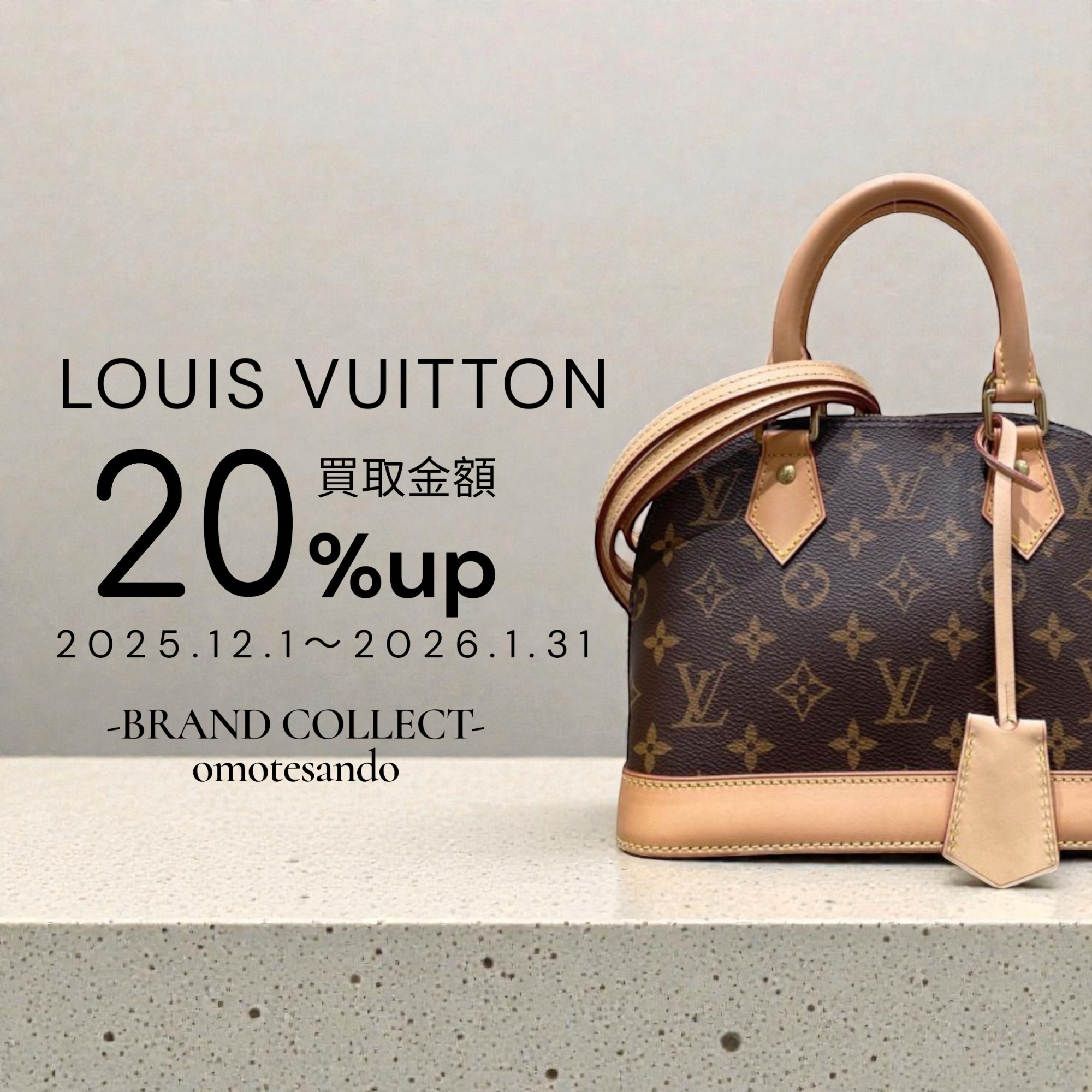 内容:買取成立品の中にLOUIS VUITTON/ルイ ヴィトンのアイテムが1点でも含まれていると合計の買取金額が20%UP