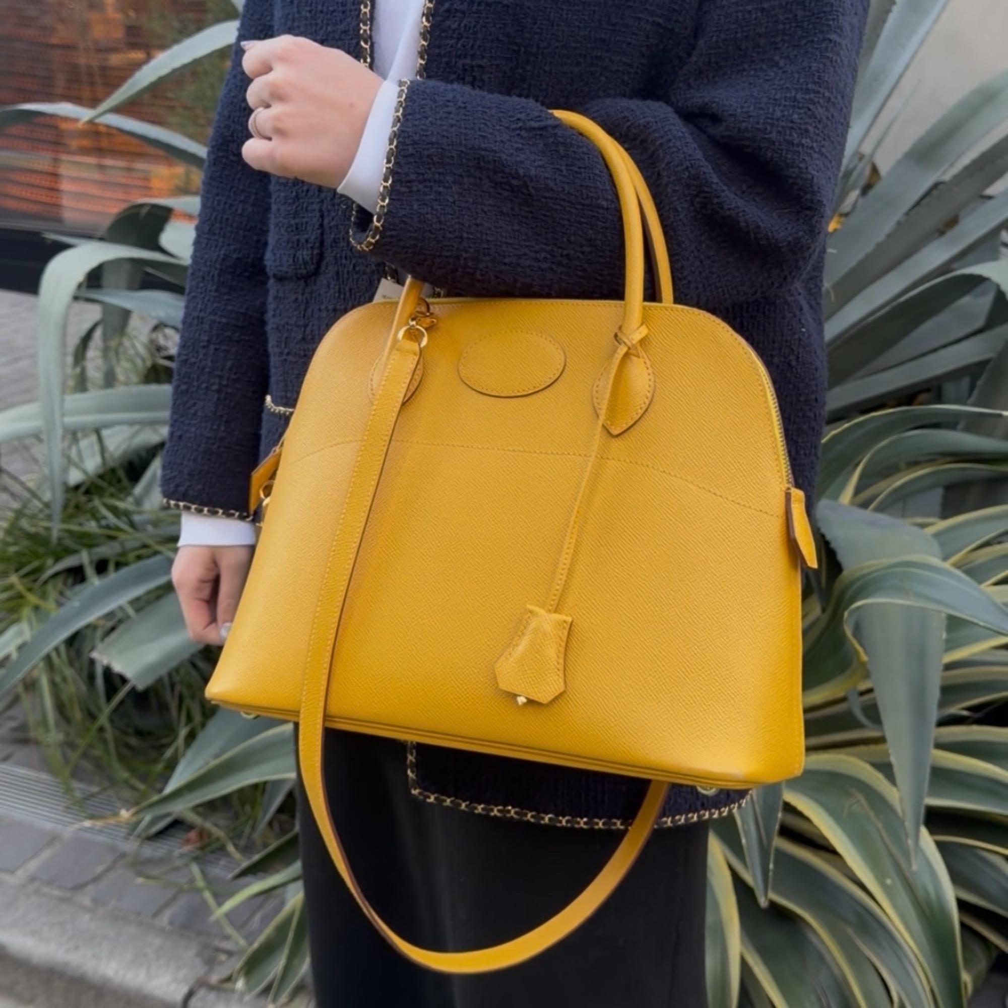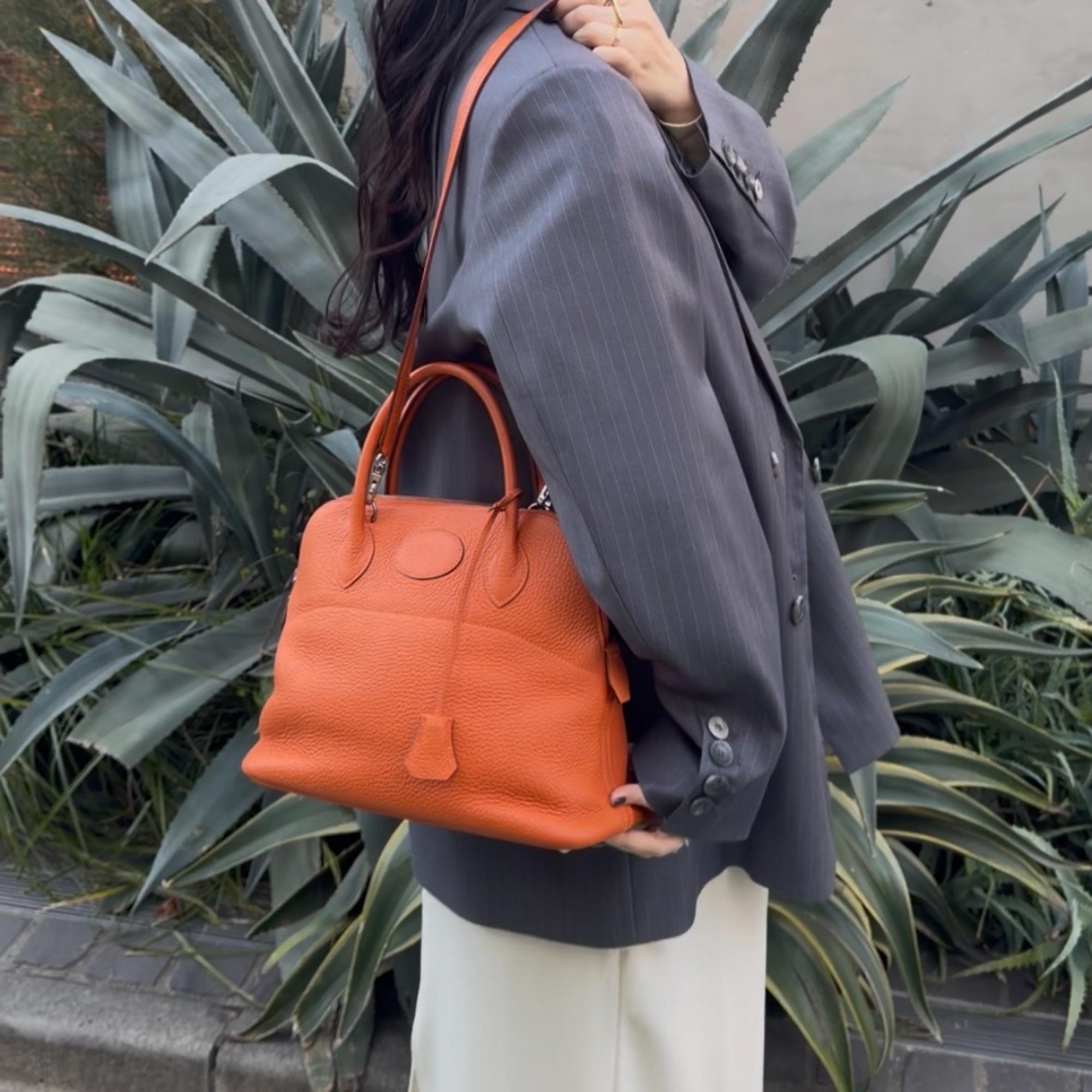 今回ご紹介するのは、HERMÈSを代表する「ボリード」。 丸みのある上品なフォルムと実用性を兼ね備え、世代やシーンを問わず愛され続けている定番モデルです。 オレンジやイエローといった華やかなカラーは、冬の落ち着いたコーディネートに一点取り入れるだけで、ぐっと春らしい印象に仕上げてくれます。