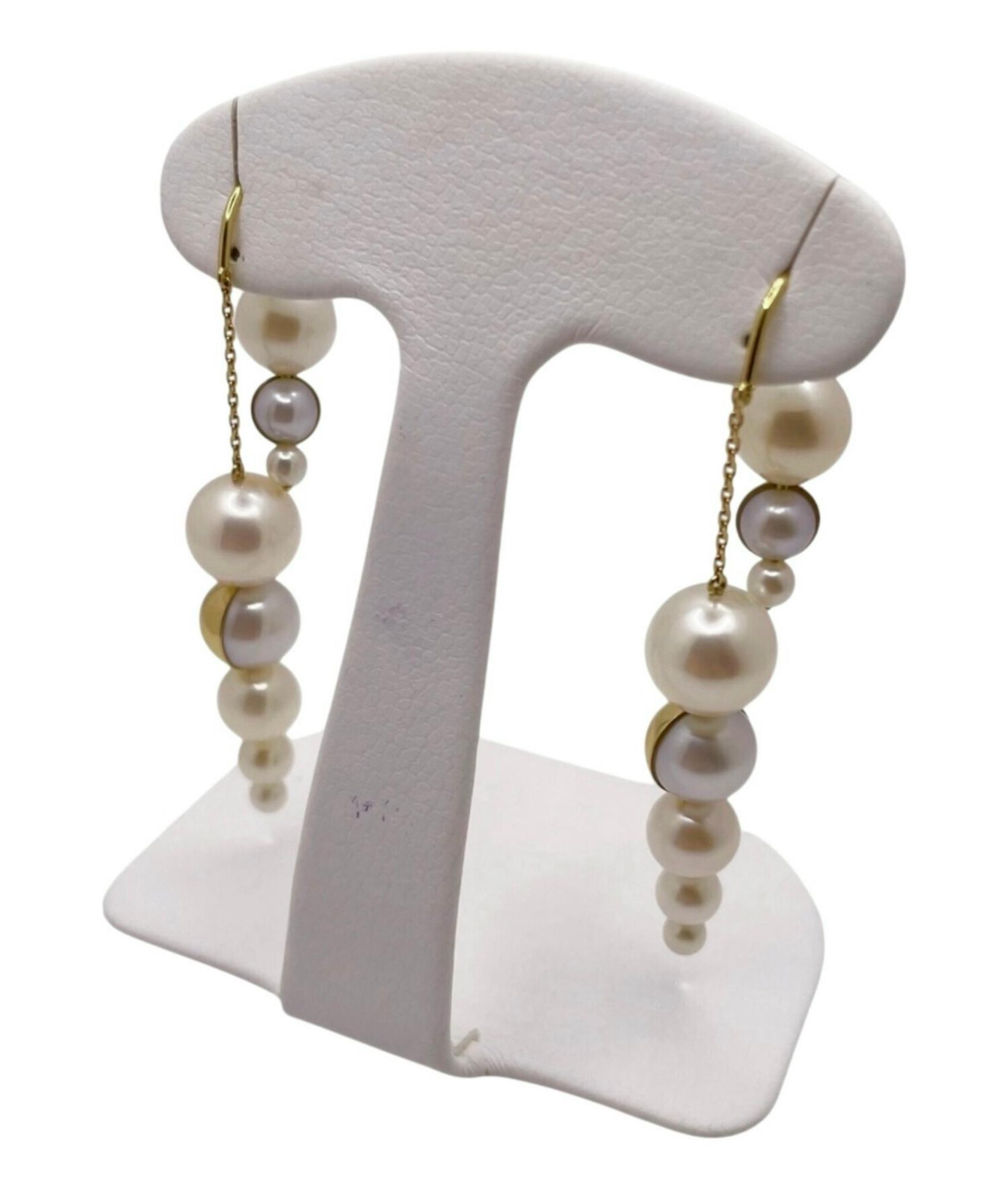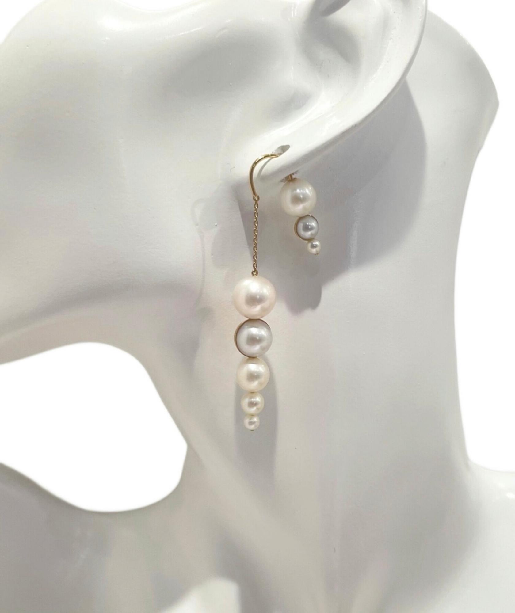 タサキならではの美意識が光る「シェル」シリーズのドロップピアス。サイズの異なるパールを緩やかなグラデーションで配置し、貝殻を思わせる有機的なフォルムを表現しています。イエローゴールドにあしらわれた2粒のパールがさりげないアクセントとなり、上品な華やかさをプラス。程よいボリューム感で顔周りを明るく引き立て、装いにリッチな印象を添えてくれるデザインです。